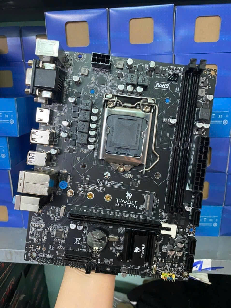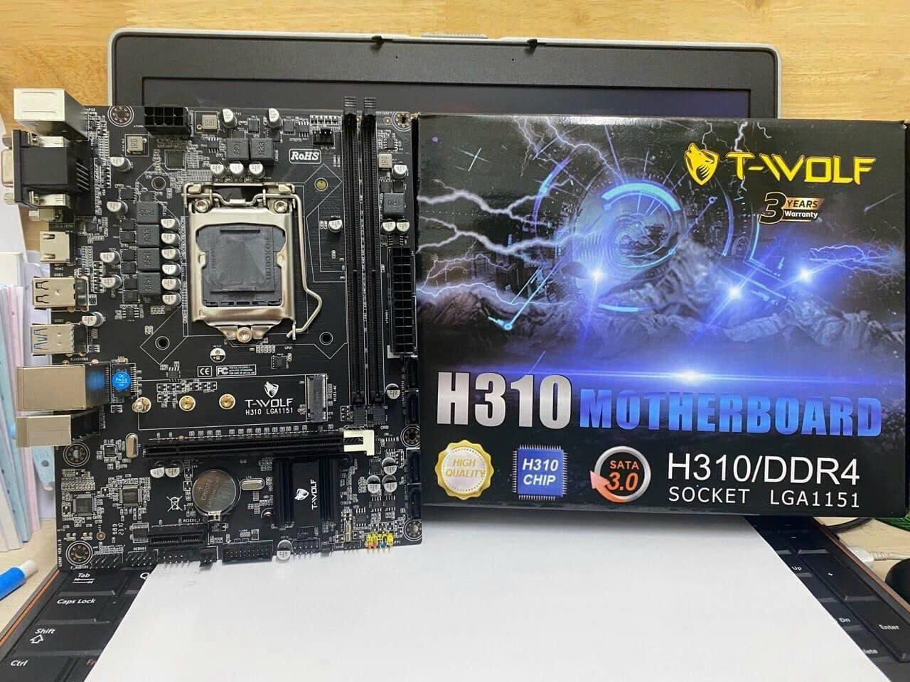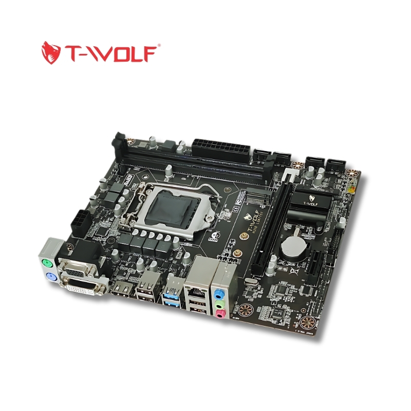 Mainboard T-WOLF H310 sử dụng socket LGA1151, tương thích với các dòng Intel Core i3, i5, i7, Pentium và Celeron thế hệ Coffee Lake, đáp ứng tốt nhu cầu sử dụng văn phòng và gaming cơ bản.
